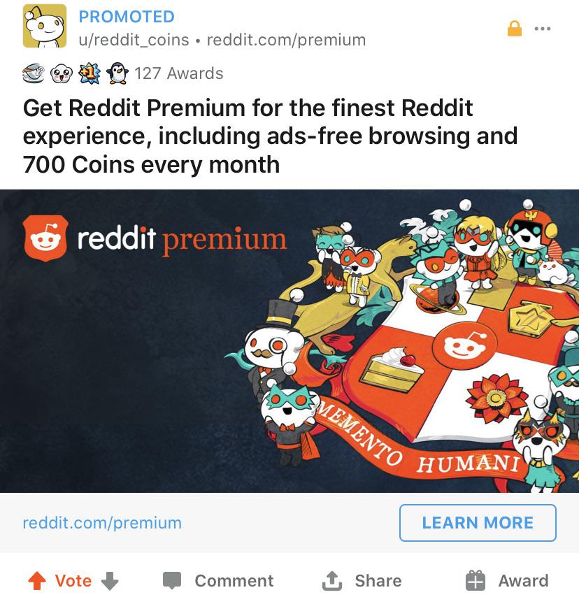 Reddit coin ads, now come preupvoted... apparently