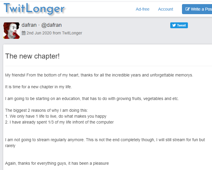 Dafran was an ex overwatch pro player and streamer he quit it all to be just a farmer, this king is one of us.