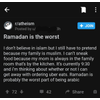 WHAAT!!? YOU'RE TELLING ME THIS IS A RELIGION THAT DOESN'T ALLOW ME TO STUFF MY FACE AT EVERY LIVING SECOND!!? OPPRESIVE CONFIRMED!!