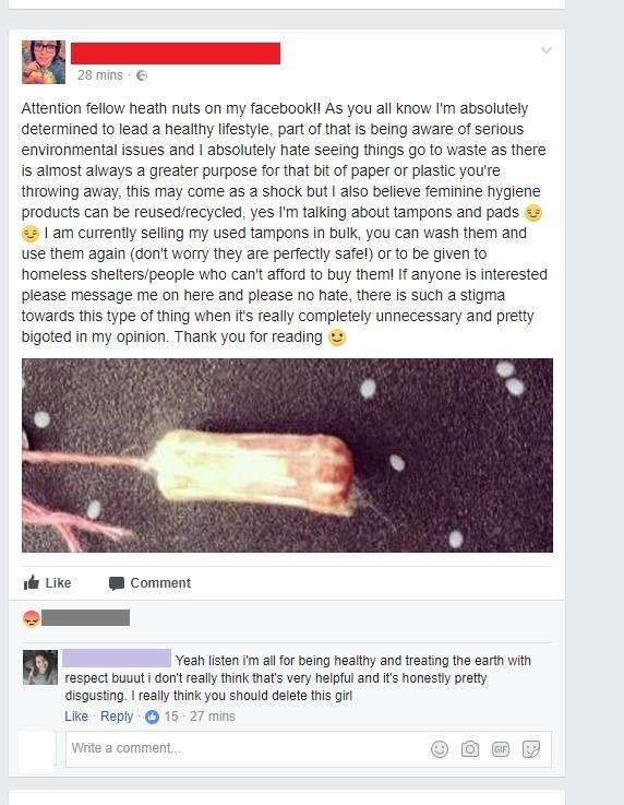Nothing more charitable than selling my used tampons